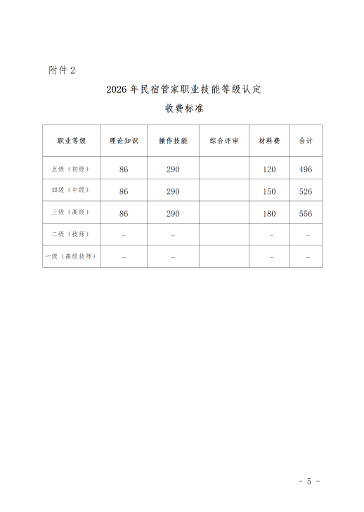 1 | 民宿管家 | —— | 五级/初级 | 3、6、11 |