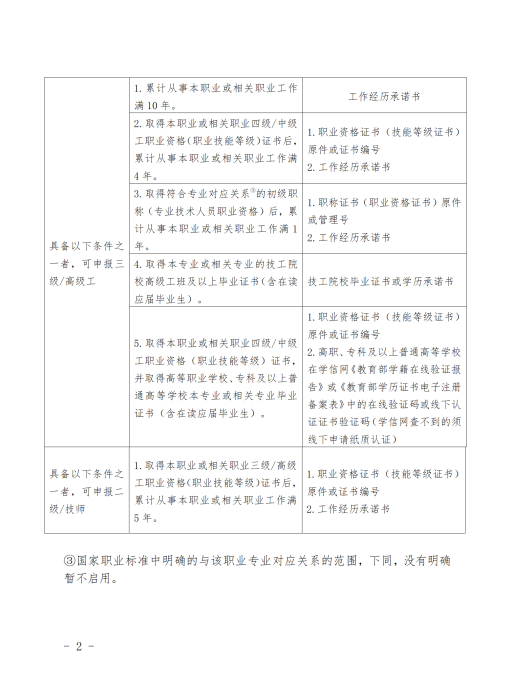 3.申报材料:符合《国家职业标准编制技术规程(2023年版)》中相应等级申报条件的考生,可报名参加职业技能等级认定。具体申报条件及需提交的申报材料见附件1。